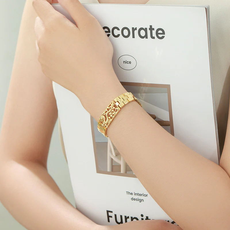 Hollow Dragon Engraved Gold Bracelet